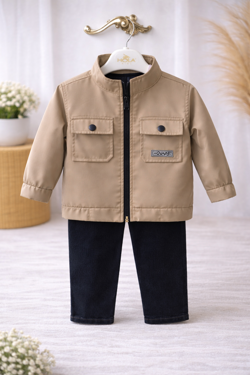 Erkek Bebek Mevsimlik Düğmeli Ceketli 3’lü Takım